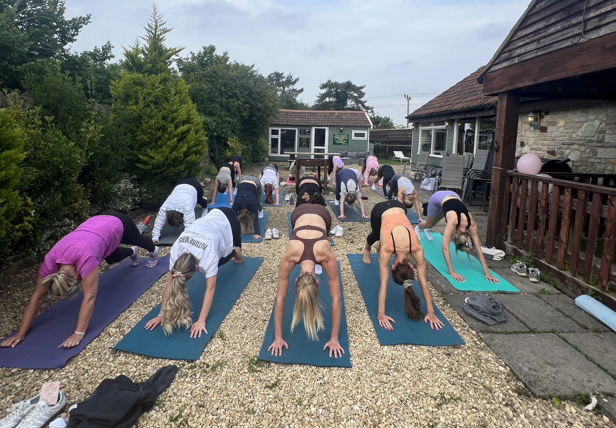 Picture is Hayley doing a Yoga class at our property Bramley Barn.